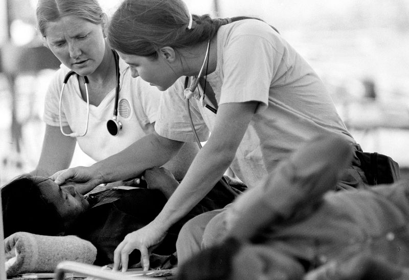 Pat was a third-year medical student in 1979, when she joined the ‘ARC 15’, a small team of doctors, nurses, and medics deployed to Khao-I-Dang Refugee Camp on the Thai-Cambodian border. At the time, the camp sheltered over 160,000 displaced people, many suffering from malnutrition, tropical diseases, and trauma. Pat’s work went beyond treating immediate illness – she helped train Cambodian refugees to become medics, ensuring care could continue sustainably after the ARC volunteers returned home to the US.